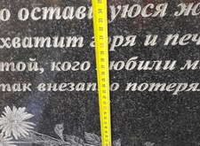 Клиент заказал симметричное уже установленному памятнику надгробье, поэтому для начала мы перемеряем уже существующие надпись, портрет, эпитафию и гравировки.